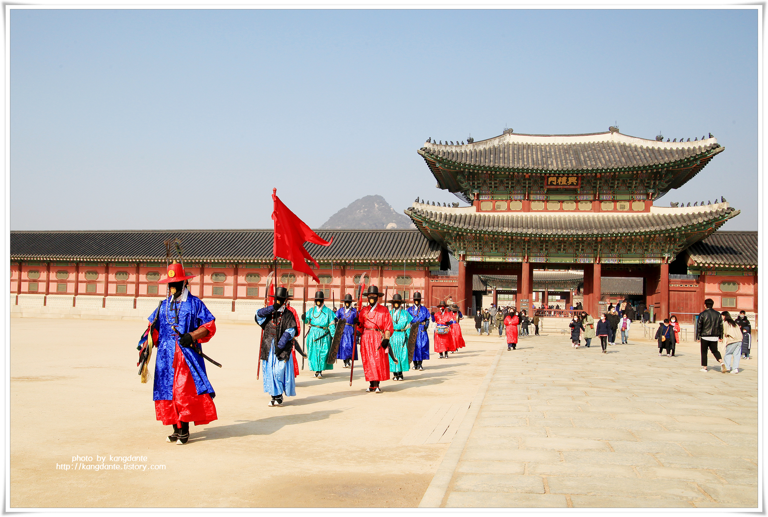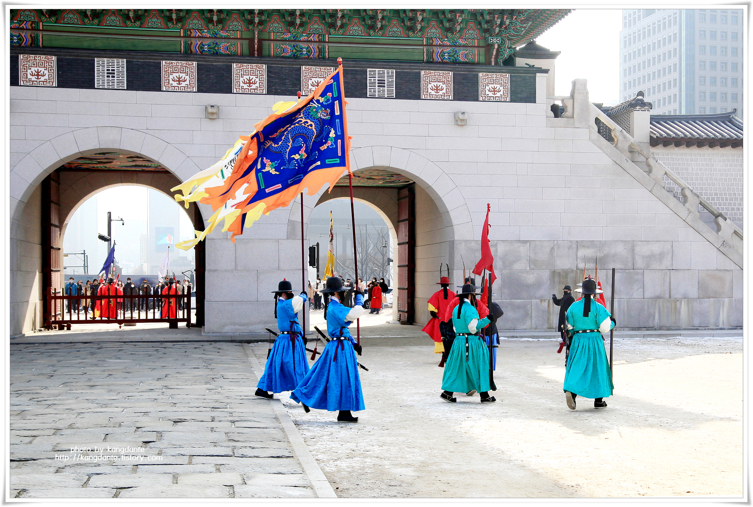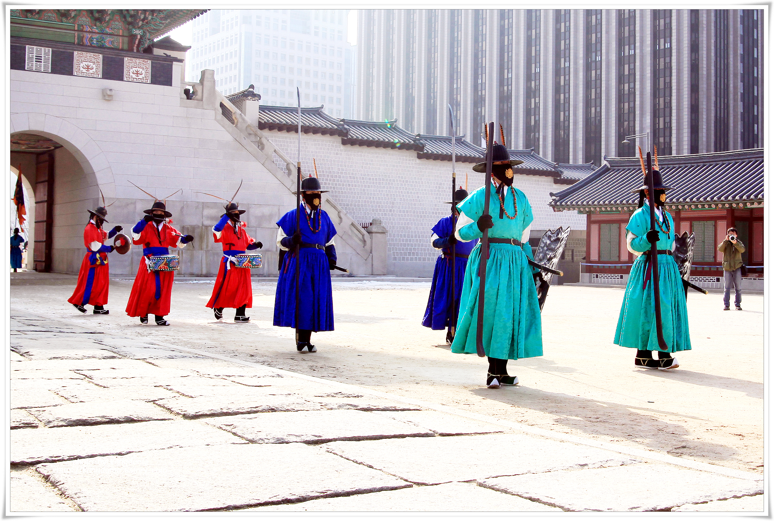 경복궁 수문장 교대의식은 광화문과 흥례문 사이의 광장에서