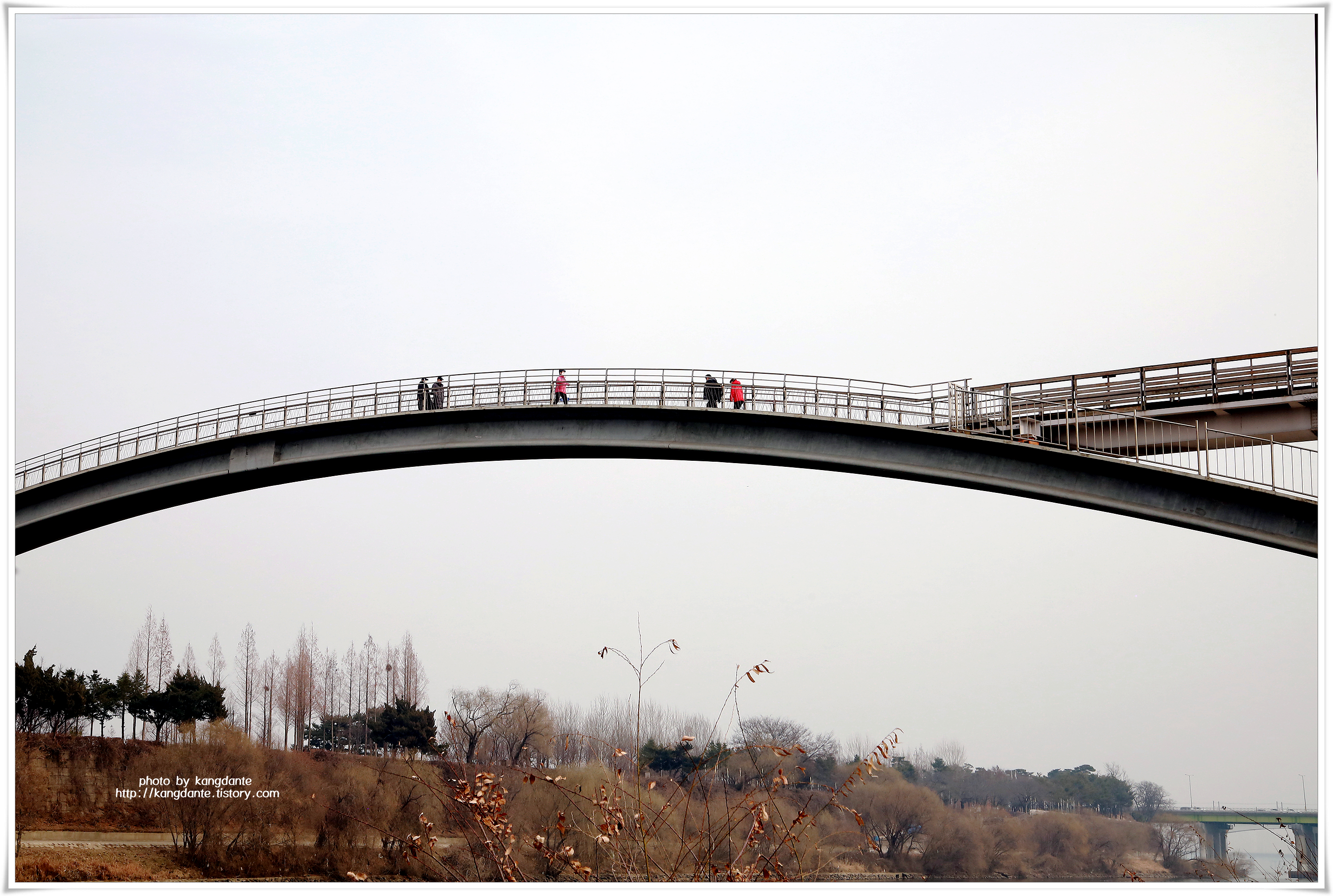 120m(전체 길이 469m)길이의 보행전용 무지개 모양의 아치형 구름다리이다.