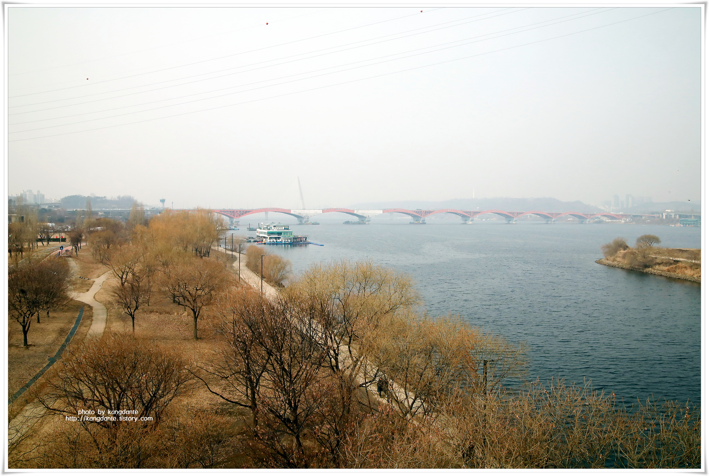 짙은 미세먼지로 인해 희뿌옇게 보이지만 유유히 흐르는 한강과 함께 색다른 풍경을 연출하기도 한다.