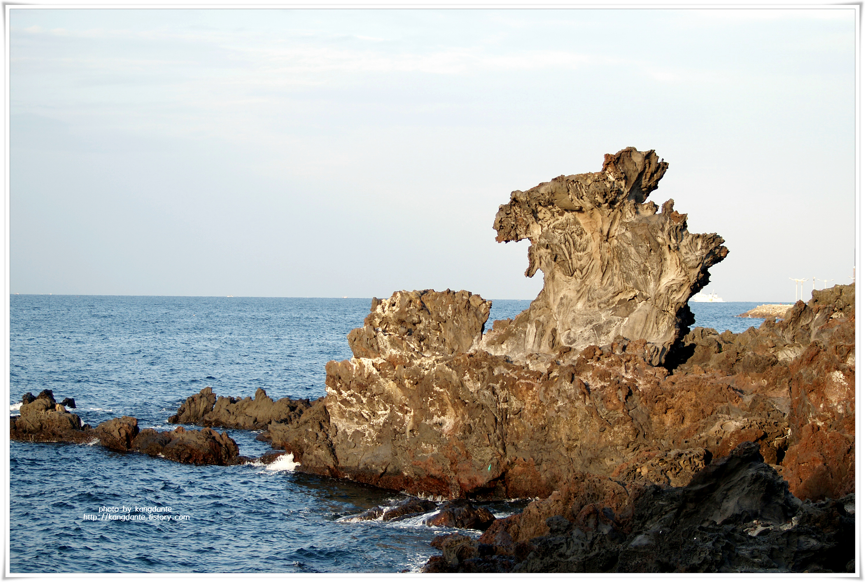 바다 속에 잠긴 몸통 길이 30m에 바다위로 나온 머리 높이가 10m 규모의 바위로