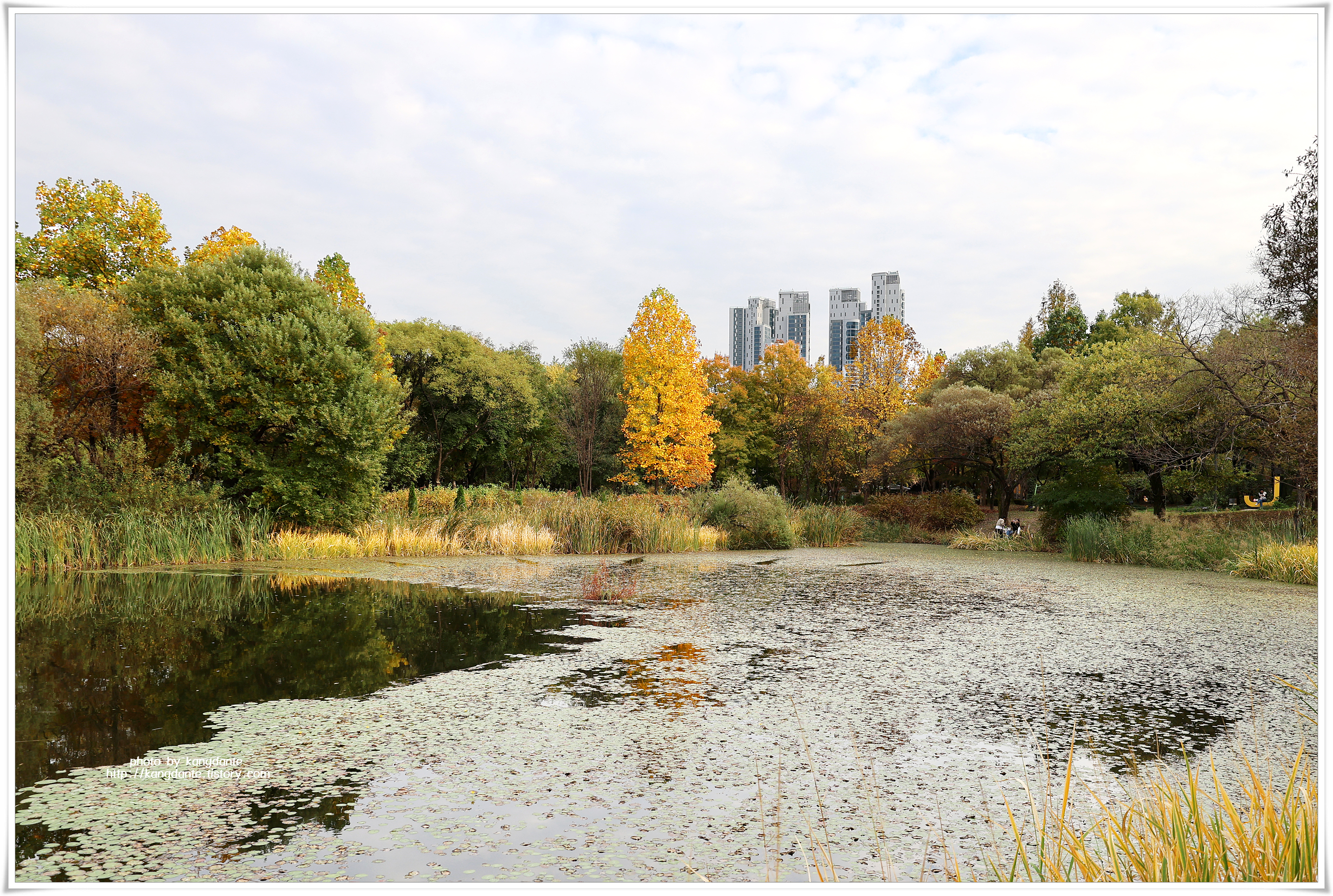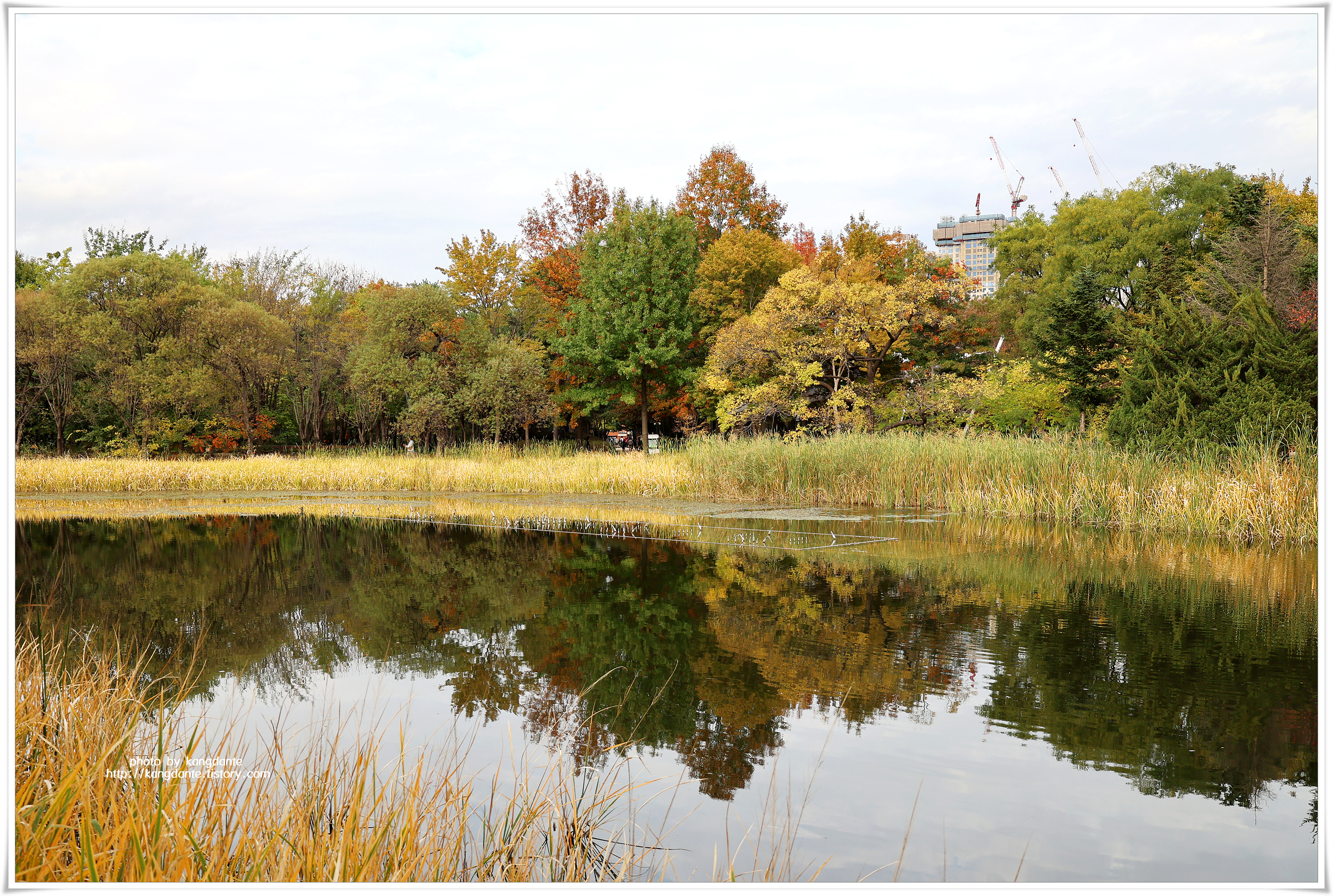 서울숲 중앙호수는 서울숲 중앙에 자리한 호수로 호수 속에는 다양의 물고기들이 서식하고 있다고 하며, 주변의 나무들이 하나둘 단풍으로 물들어 가는 풍경이 환상적인 가을 분위기를 연출하고 있다..