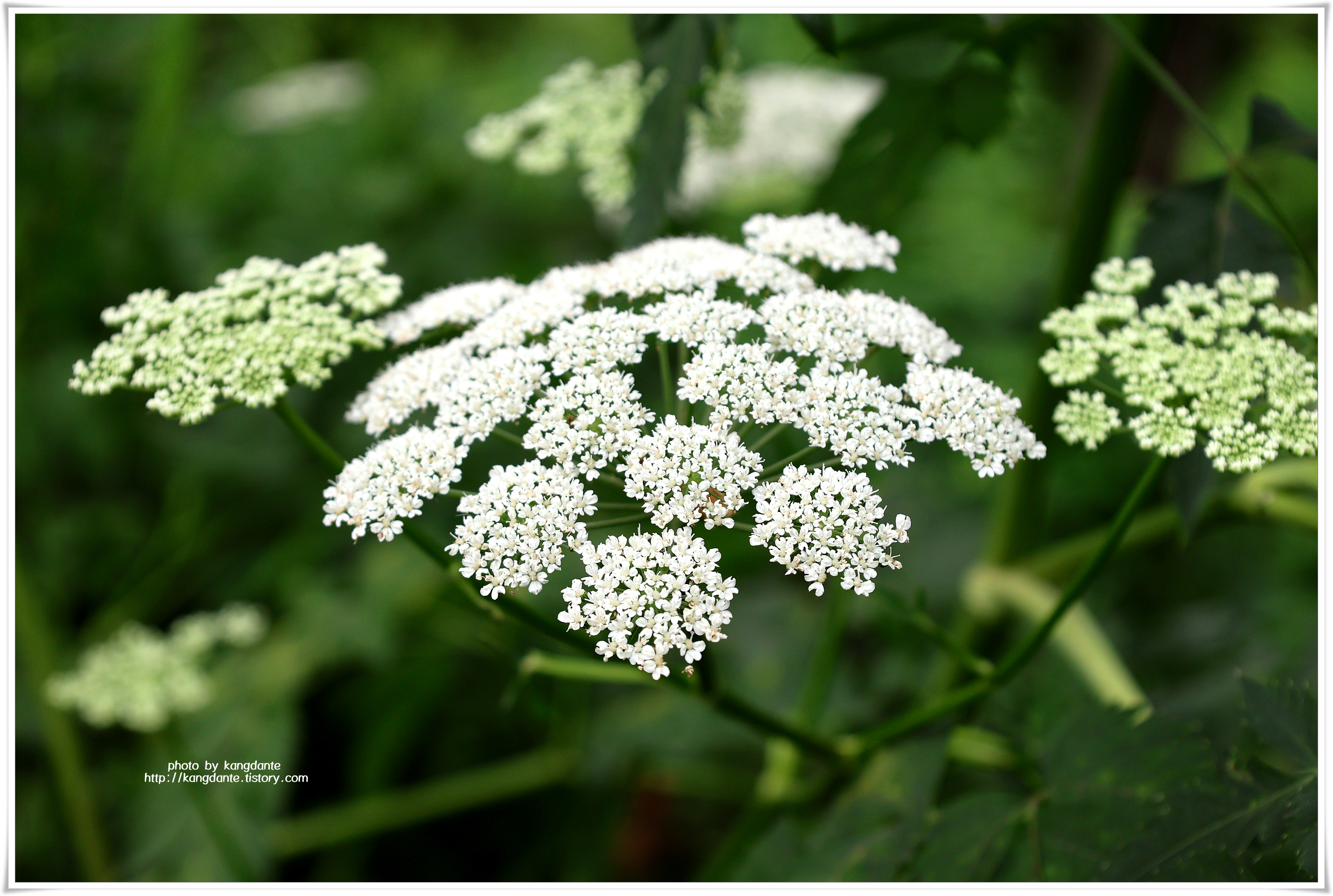 당근은 미나리과에 속하는 두해살이풀로 일반적으로 주황색 뿌리를 식용으로 사용하지만, 꽃은 6~7월에 흰색으로 겹우산 모양꽃차례로 달린다.