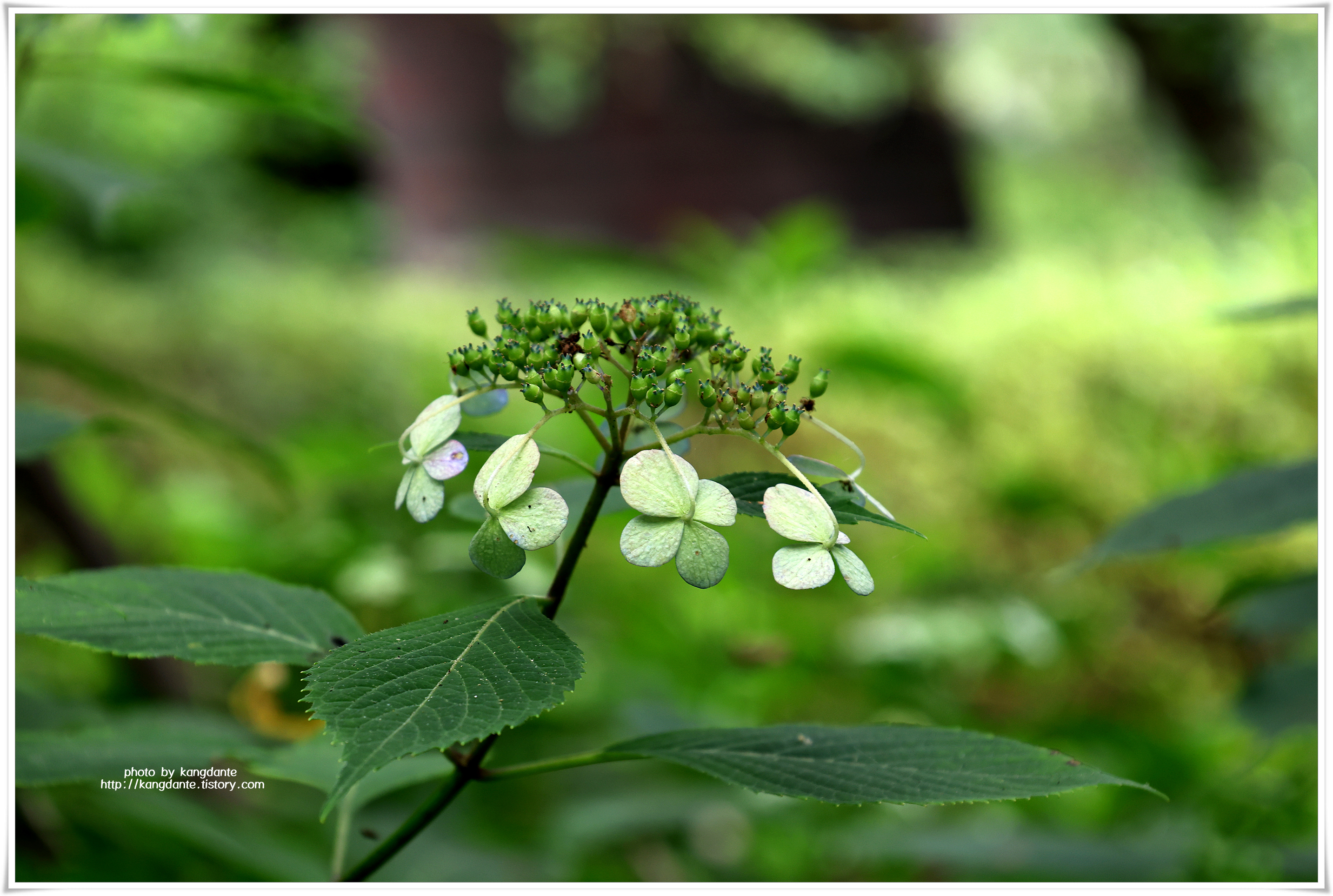 산수국(山水菊)은 범의귀과에 속하는 낙엽활엽관목으로, 산골짝이나 그늘진 계곡에서 다수가 군집을 이루고 건조한 바위틈이나 습한 계곡에서도 잘 자란다.