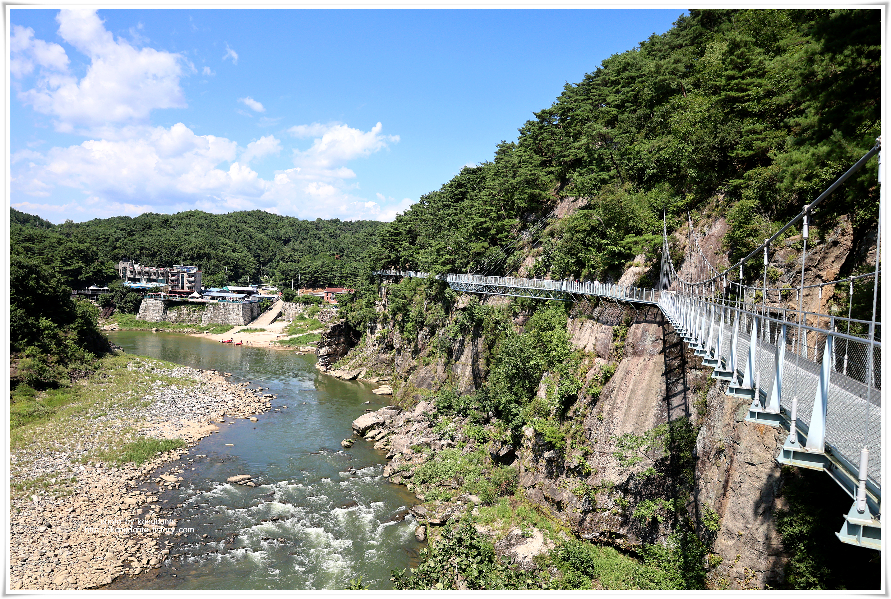 한탄강은 ‘큰 여울의 강’이란 뜻으로 계곡이 깊고 여울이 커서 붙여진 이름으로 국내에서 유일하게 용암분출로 이루어진 화산강이며, 기묘한 바위와 깎아 내린 듯한 벼랑 그리고 맑은 강물 등으로 아름다운 절경을 연출한다.