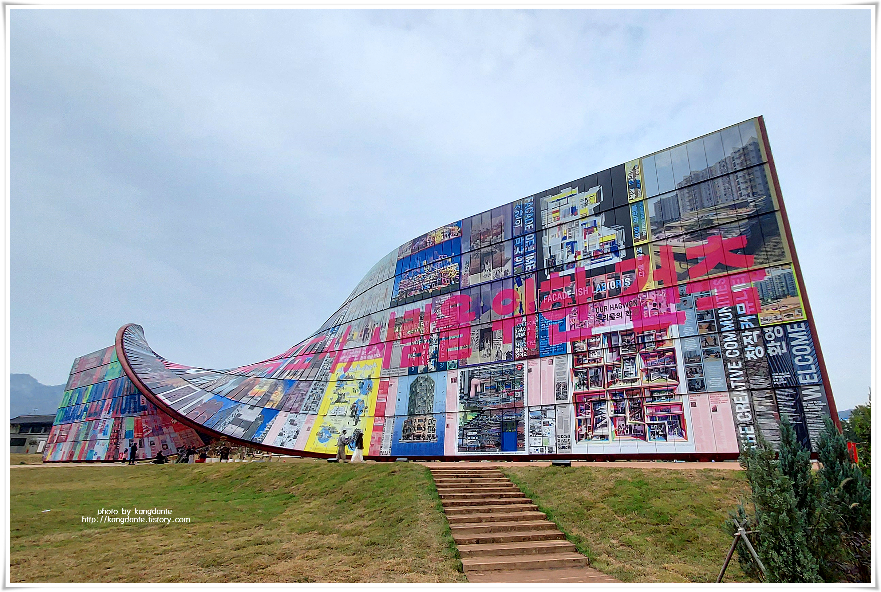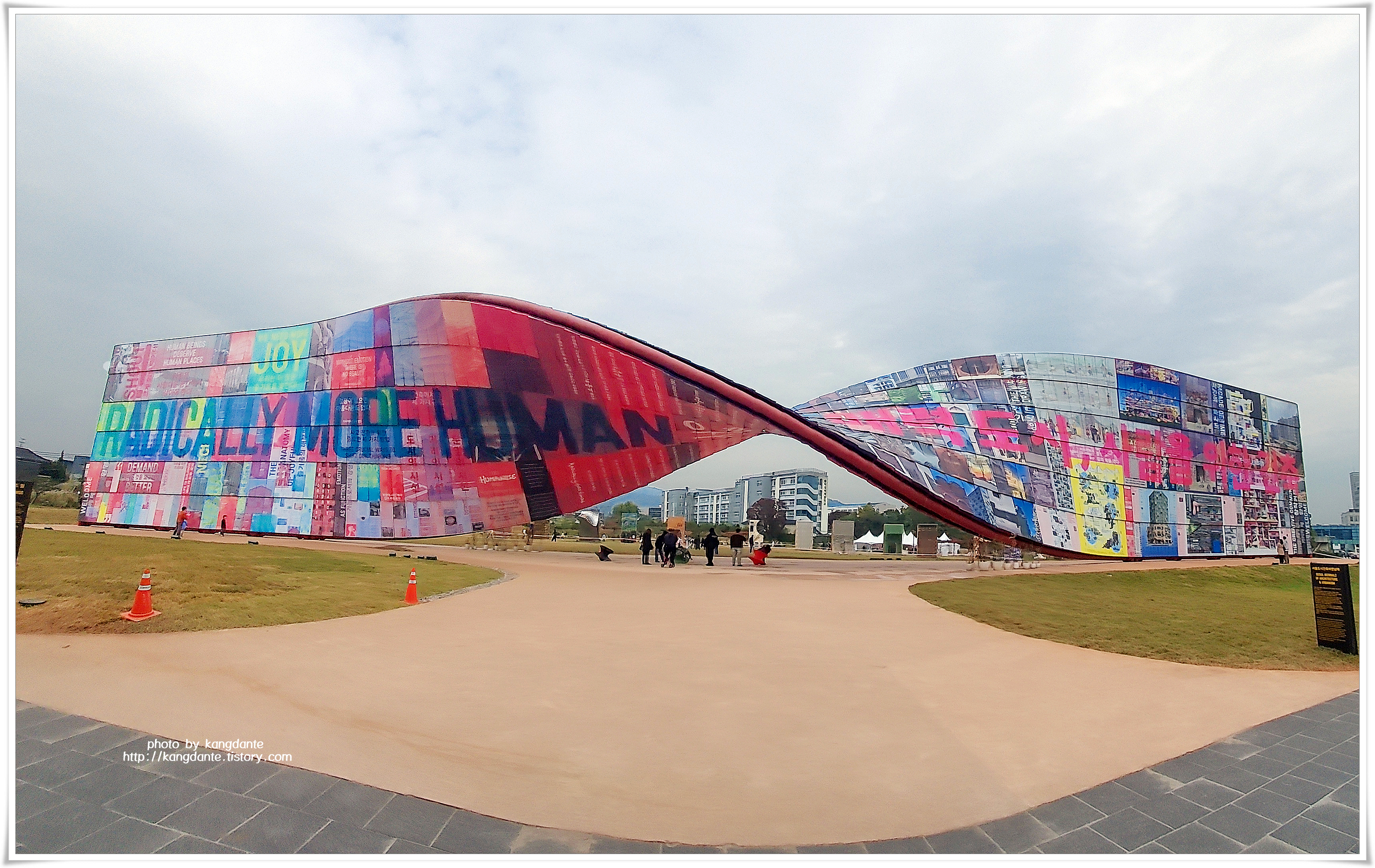 ‘휴머나이즈 월’은 가로 90m 높이 16m 규모의 대형 조형물이며, 38개국 110명 디자이너가 참여한 400여개 건축물 이미지와 창작커뮤니티 9개 팀의 아이디어를 모은 1428장의 스틸 패널을 쭉 이어 구성한 작품이라고 한다.