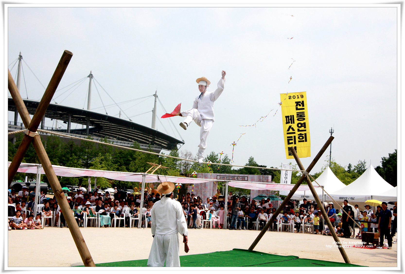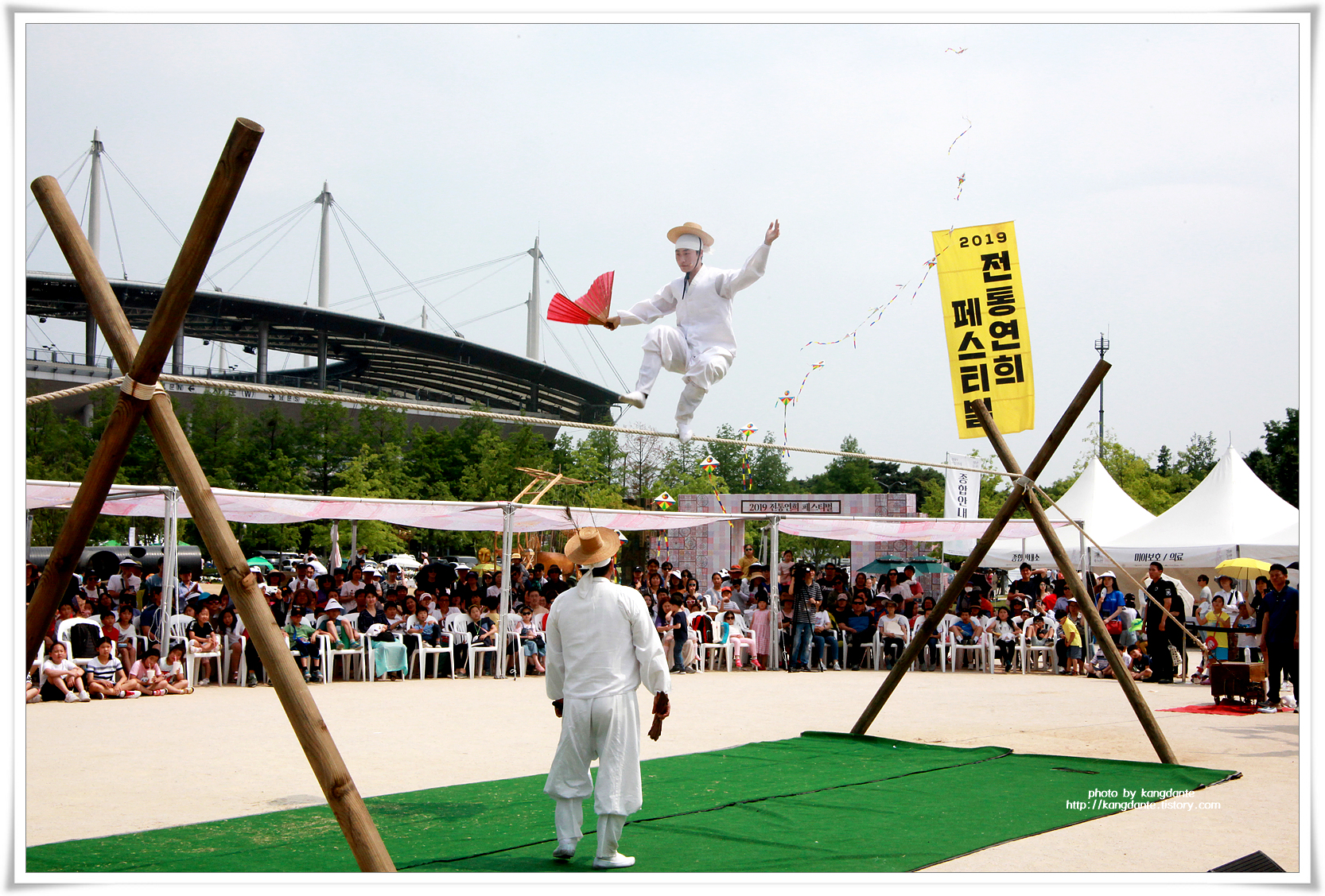 부상으로 인해 그의 제자들이 공연을 하게 되어 조금은 아쉬운 줄타기 공연이었다.